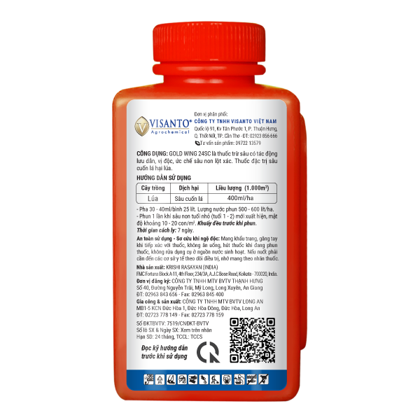 GOLD WING 24SC là thuốc trừ sâu tác động lưu dẫn vị độc, ức chế sâu non lột xác. Thuốc đặc trị sâu cuốn lá hại lúa.